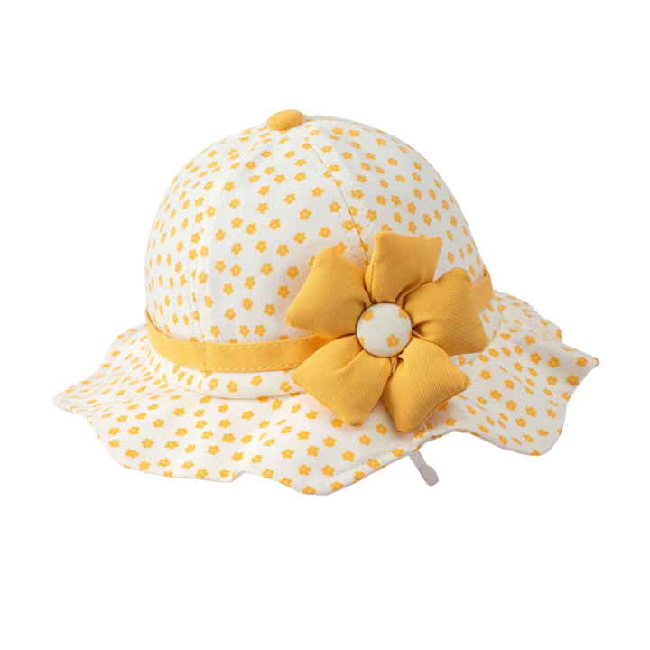 Design: Playful floral print bucket hat with a 3D flower embellishment for a cute, eye-catching look.