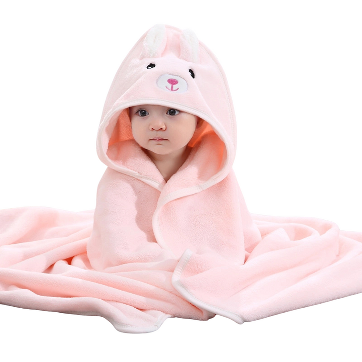 Children's hooded bath towel coral fleece bath towel elephant cloak cartoon absorbent bath towel baby newborn soft blanket
