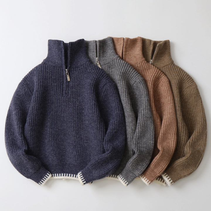Half zip jacquard cashmere boys sweater for middle and large children autumn and winter