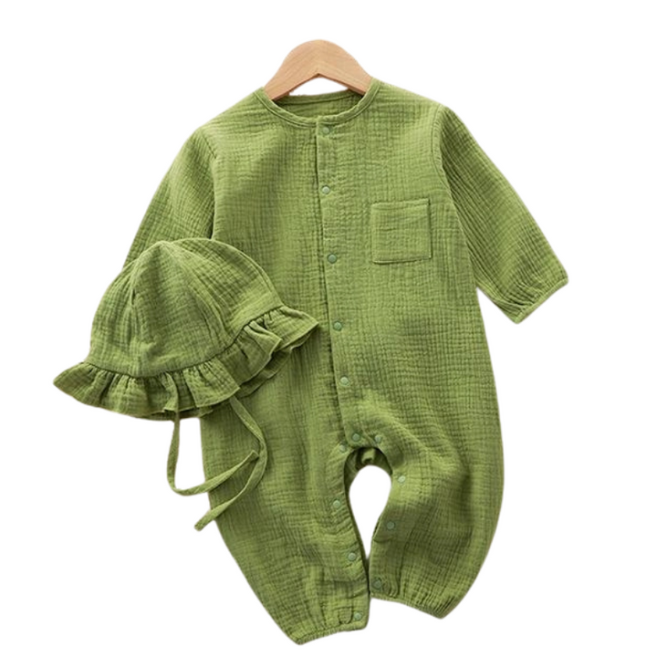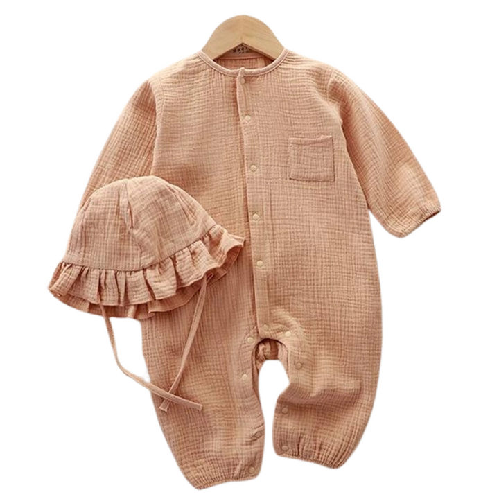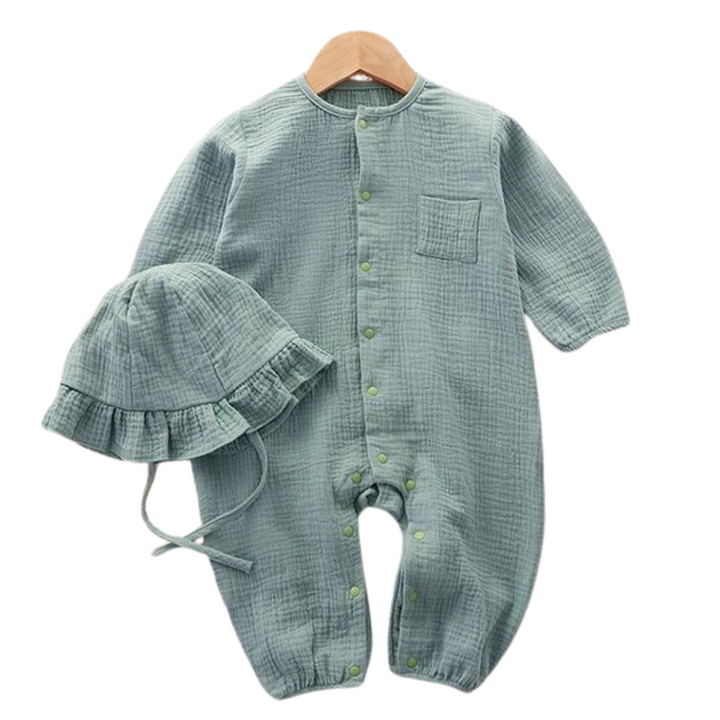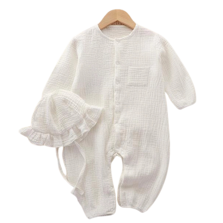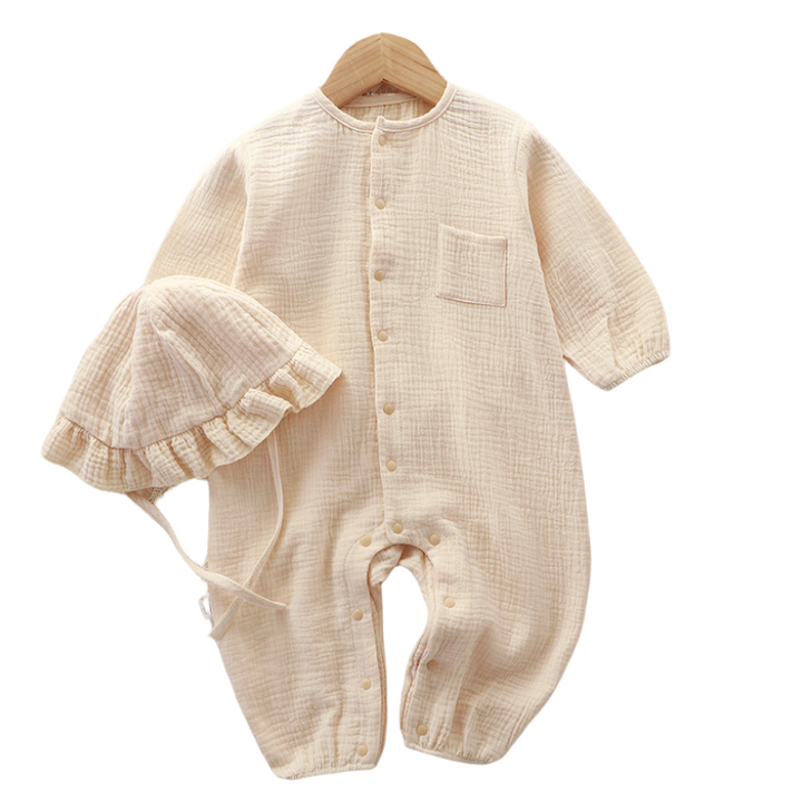New baby spring and autumn romper, newborn long romper, cotton solid color gauze jumpsuit, baby summer pajamas